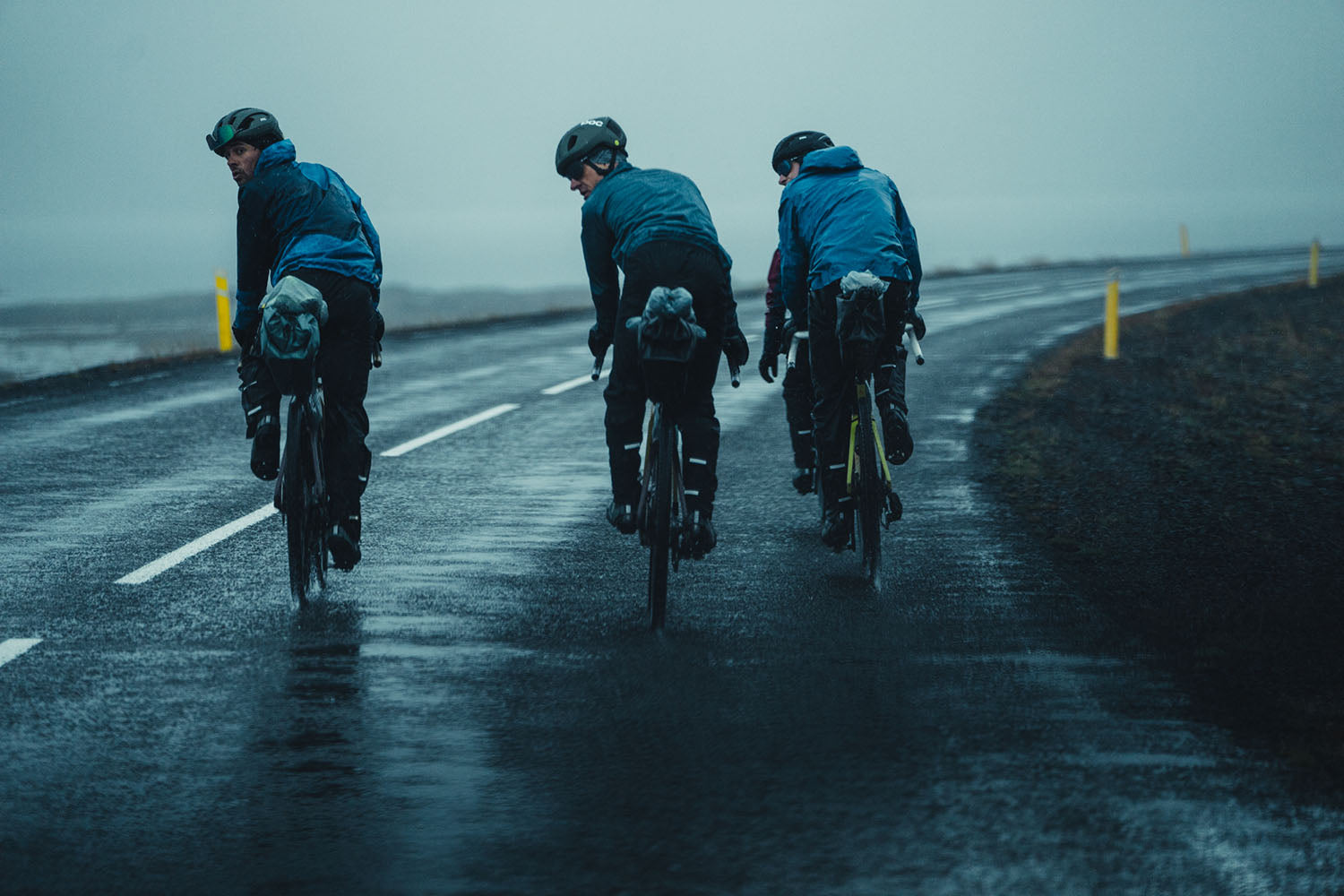 Des routes de gravel d’une beauté incroyable, des rafales de vent montant à 100 km/h qui vous donnent l’impression de voler lorsqu’elles viennent de derrière et vous poussent au bord de la folie à 5 km/h lorsqu’elles arrivent de devant. Des pluies diluviennes venant de toutes parts, nous rappelant qui est vraiment le patron ici. Sous nos pneus de gravel de 42 mm, un terrain passant d’un goudron parfait aux graviers les plus fins, en passant par des sentiers de gravel franchement impraticables. Des lumières nordiques nous laissant bouche bée pendant des heures sur la plage, remplissant des gigas d’espace photo et de vidéo, et un pays surpassant régulièrement la simplicité et la beauté.